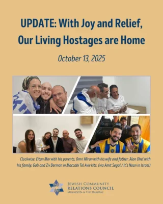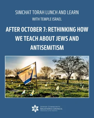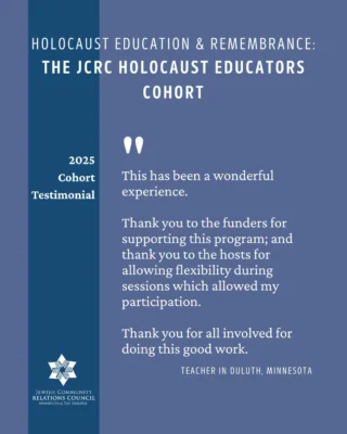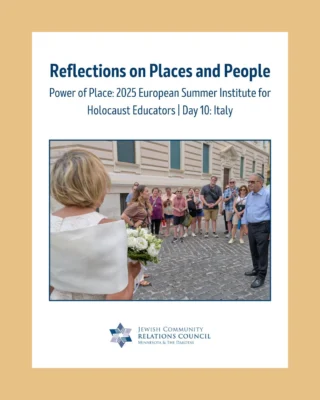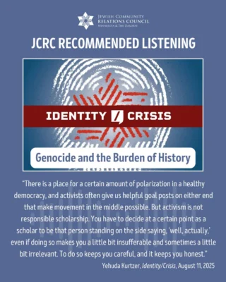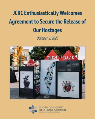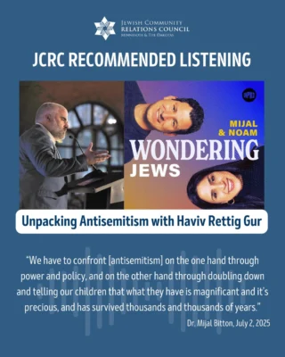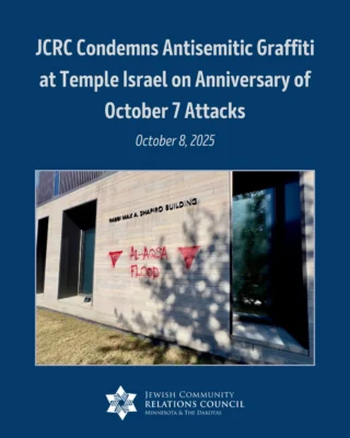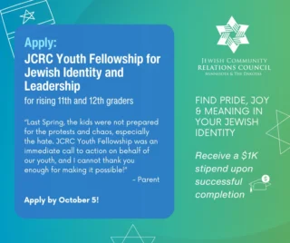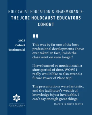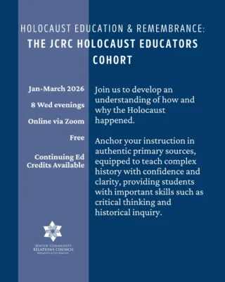 JCRC builds relationships to fight antisemitism and bigotry; educates about Judaism, Israel, antisemitism, and the Holocaust; advocates for Jewish values and priorities; and safeguards our community.
