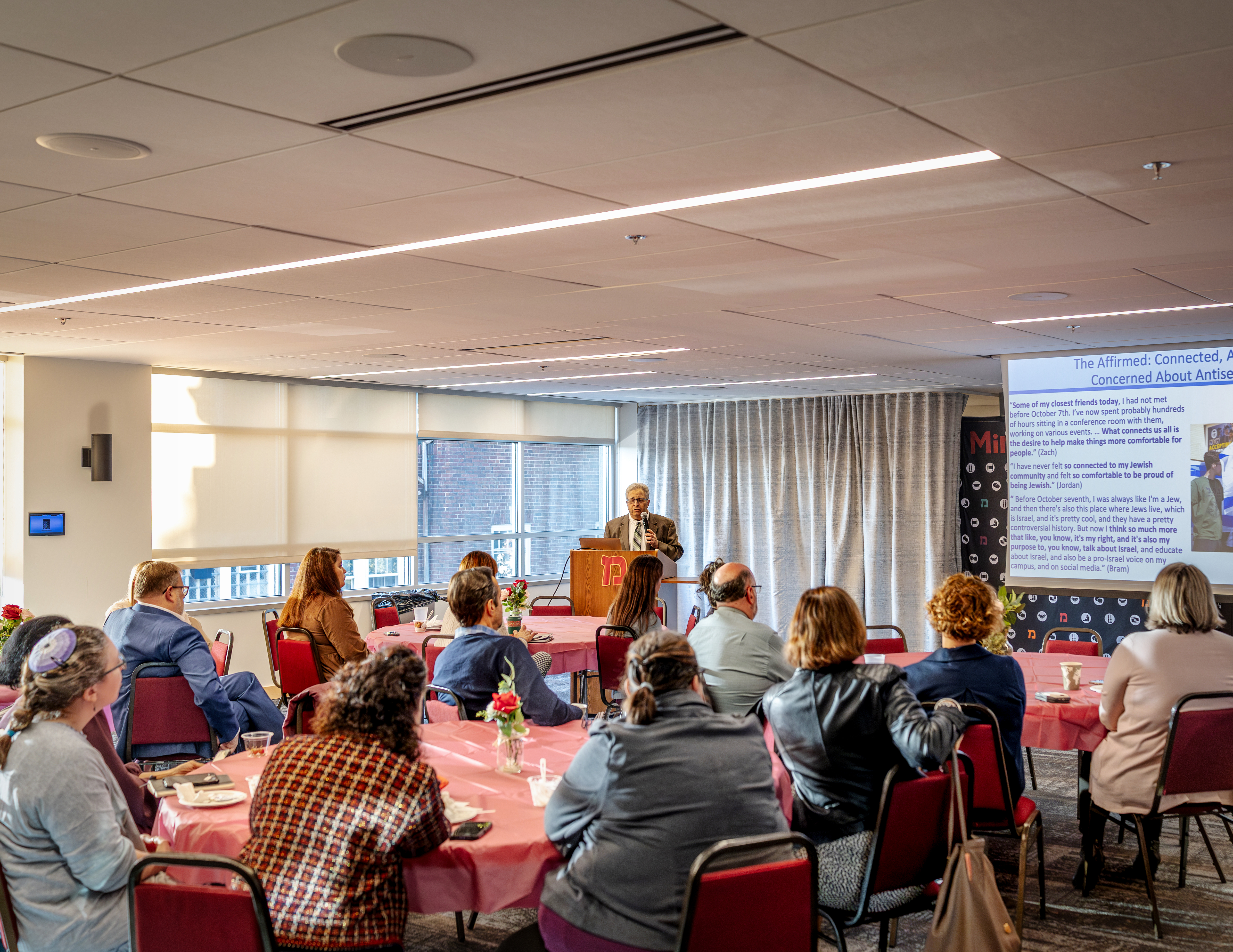 JCRC’s schedule of events for this scholar-in-residence also included a campus leadership breakfast attended by University of Minnesota, Mitchell-Hamlin Law School, Macalester College, University of St. Thomas, Carleton College, St. Olaf College, Normandale Community College and more; an overview and Q&A with the Smith Jewish Academy community about how the experience of attending day school impacts the college experience for Jewish students; and a lunch meeting and discussion between Krasner and Jewish college students on what steps might be taken to improve the campus climate.